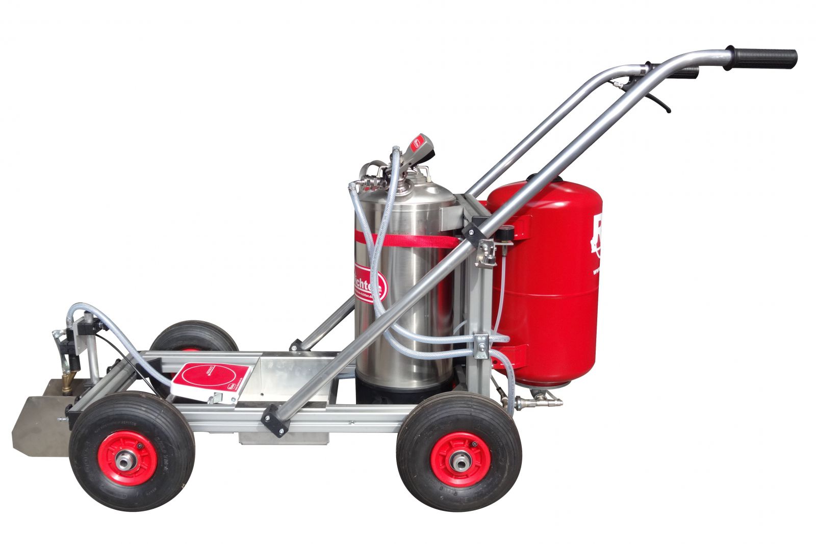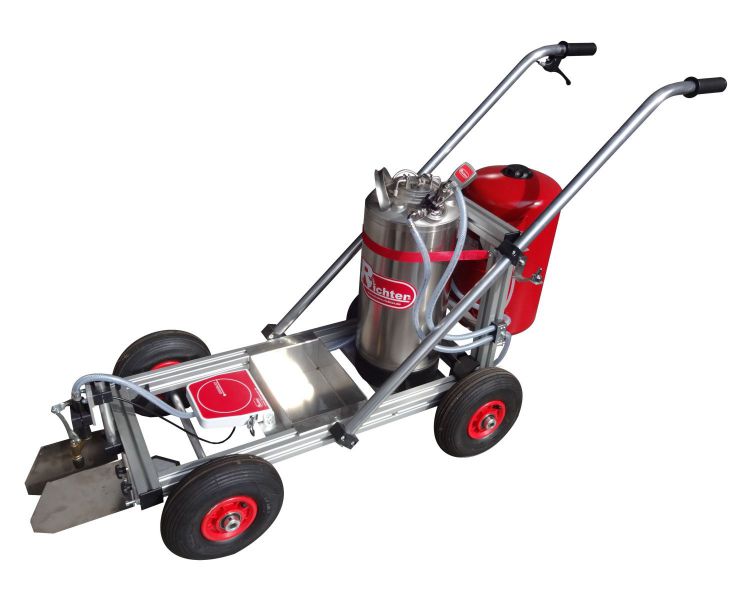 Deshalb gibt es keine elektrische- oder mechanische Pumpen bei den Richter Markierungswagen. Die Nachfrage nach pumpenfreien Markierungswagen wird immer größer. Die druckluftbetriebenen Markierungswagen von Richter erfreuen sich daher immer größerer Beliebtheit, denn Robustheit, Zuverlässigkeit, einfache und sichere handhabe zeichnen die Richter Markierungswagen aus.